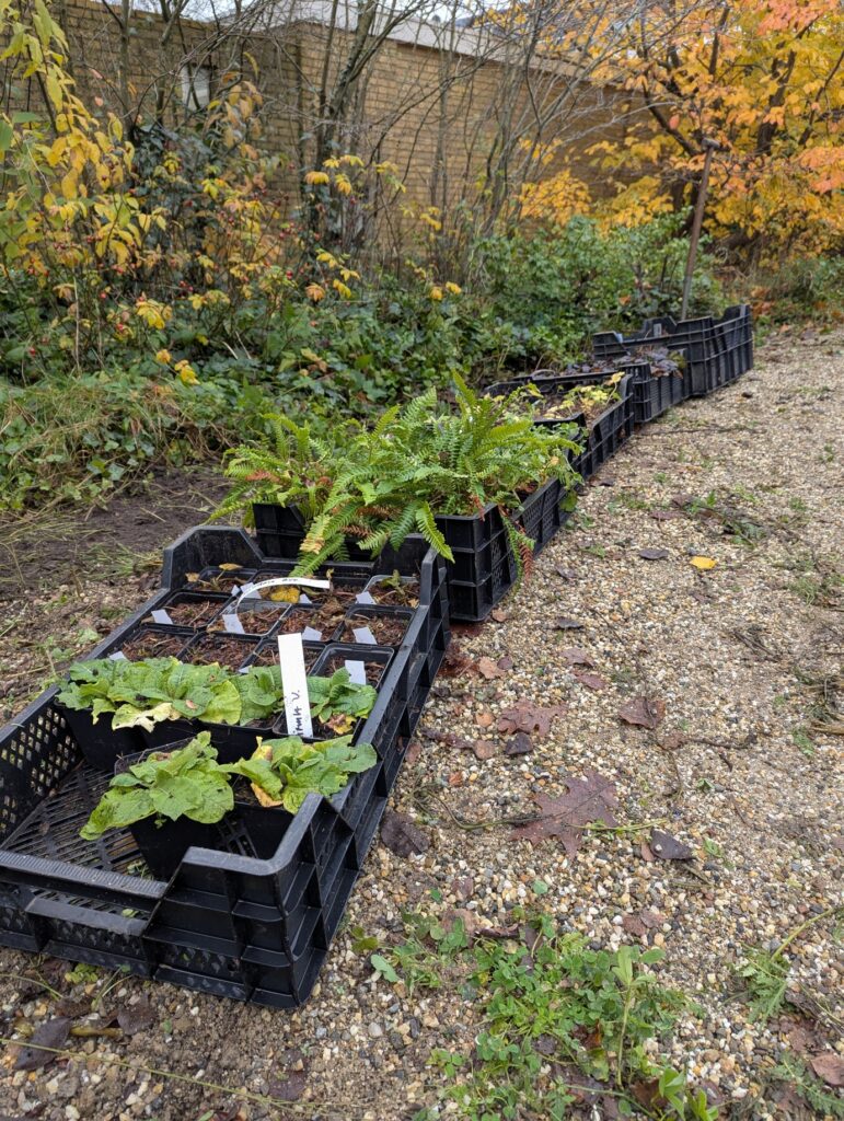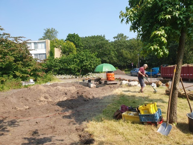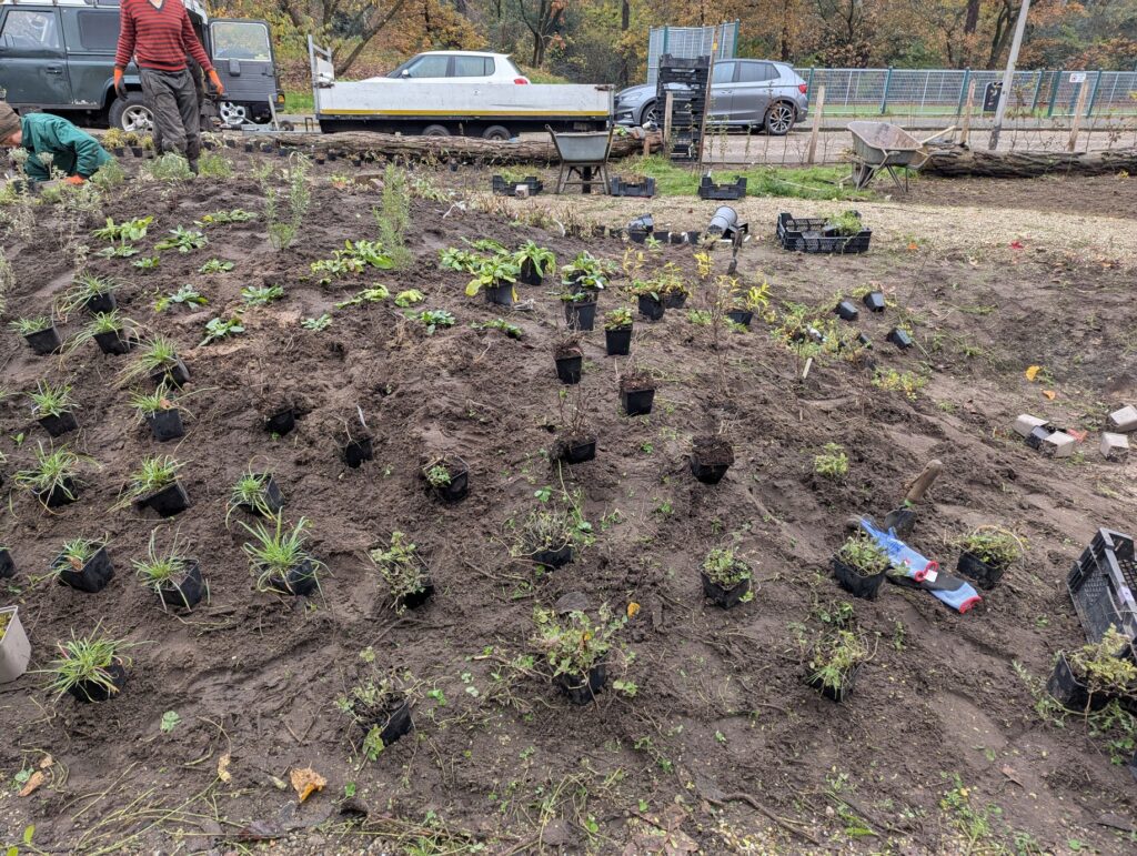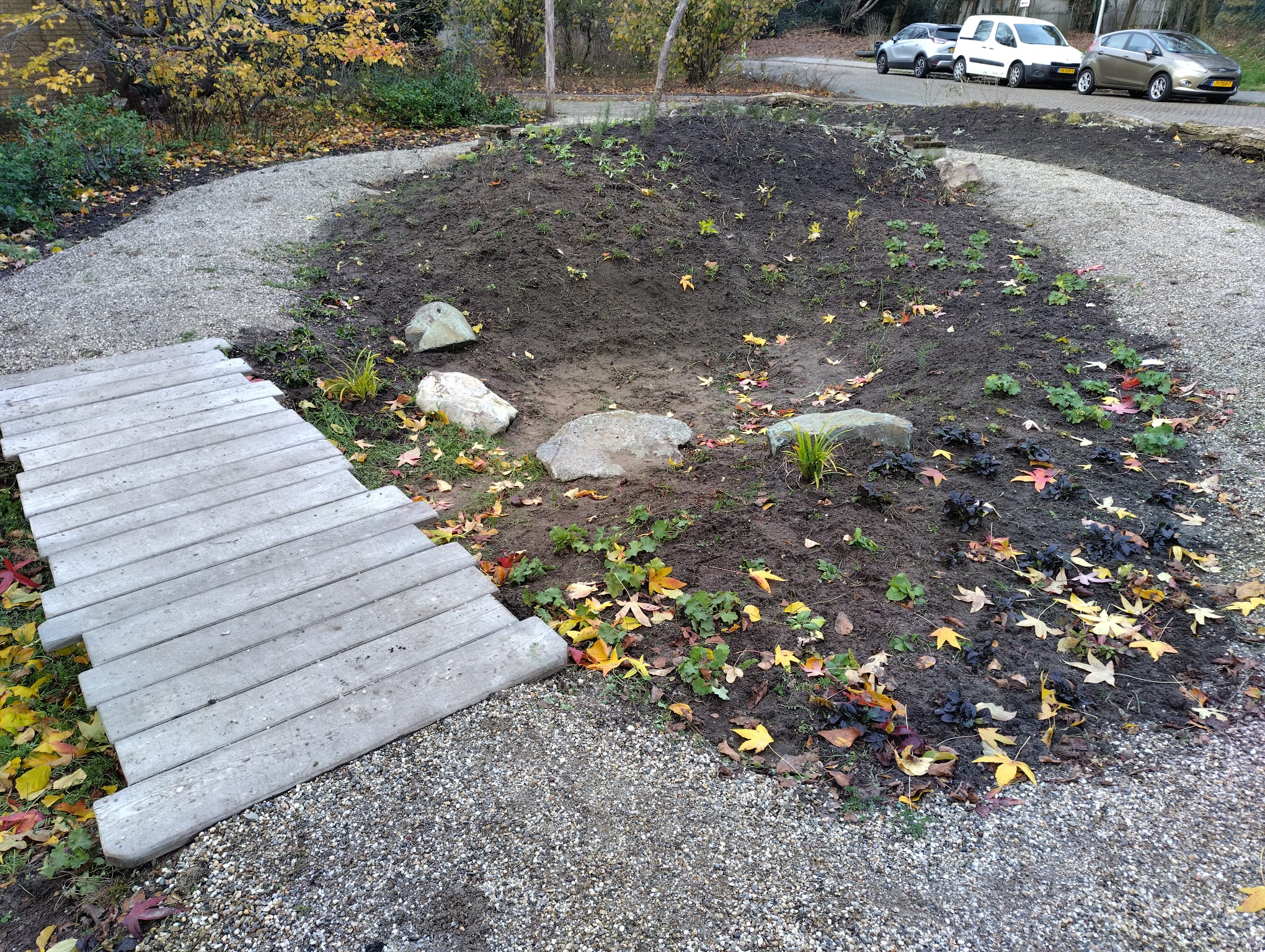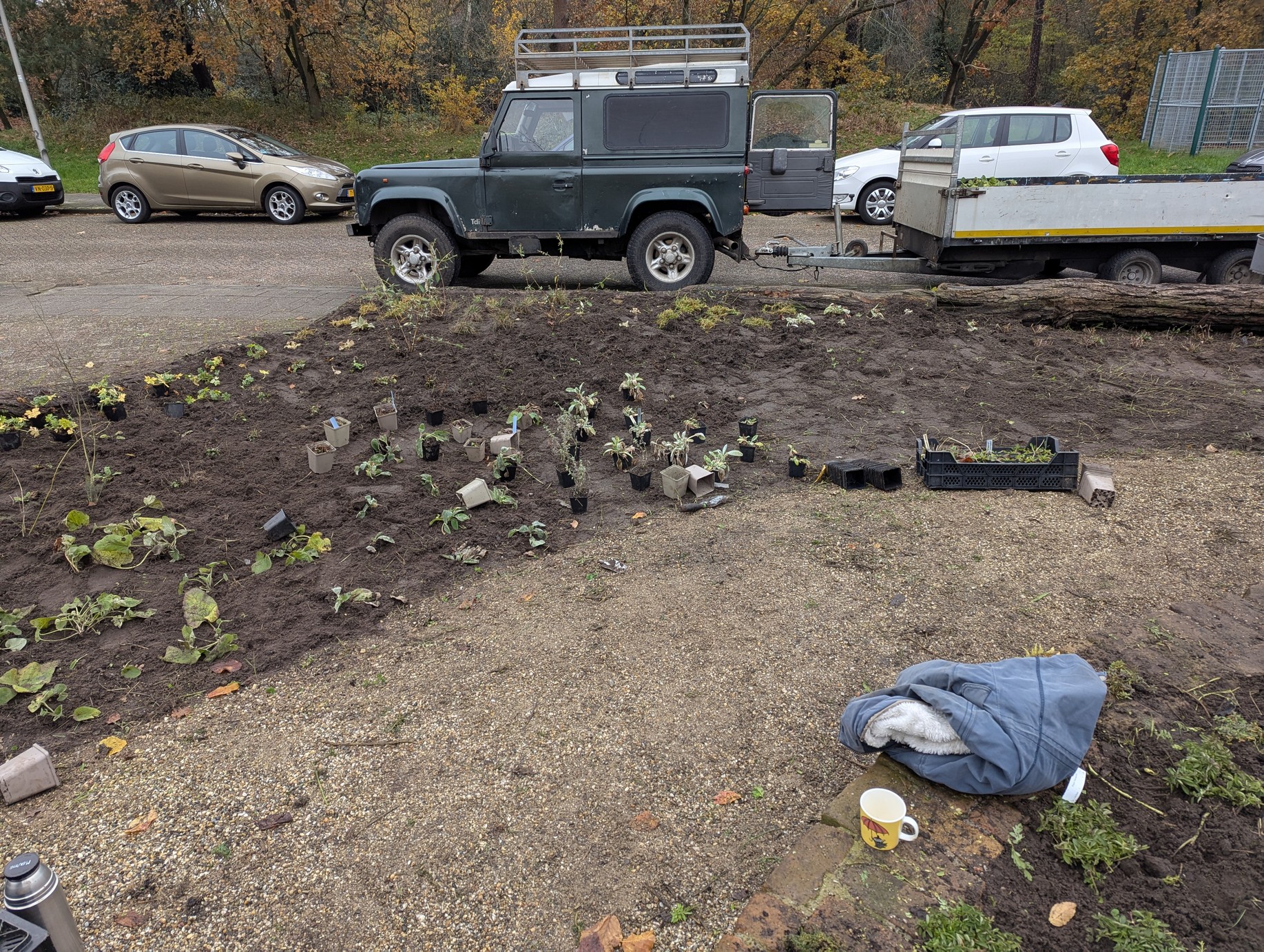 De tuin wordt verder beplant op 23 november. Een klein groepje bewoners heeft samen met de werkzaamheden uitgevoerd. De groenbemesters zijn eerst verwijderd. Dit is tijdelijke beplanting die gebruikt wordt om de bodem te verbeteren en te voorkomen dat voedinstoffen uit te bodem spoelen. Daarna zijn de nauwkeurig gekozen planten in de grond gezet. Ook zijn er veldjes ingezaaid en zijn er bloembollen geplant.