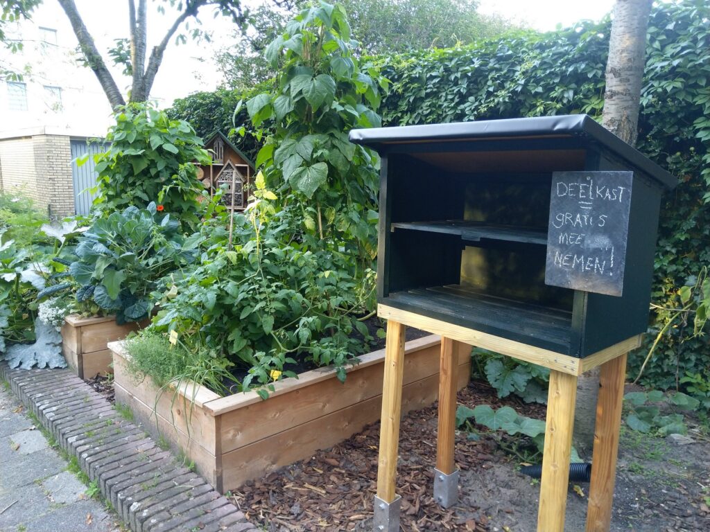 Op de Fröbellaan zijn de moestuinbakken goed op gang, er werken meerdere buren samen om bakken te beplanten, onderhouden en water te geven. Verder staat er een insectenhotel en is er een deelkast geplaatst om groente en fruit uit de bakken en ander eten te delen.