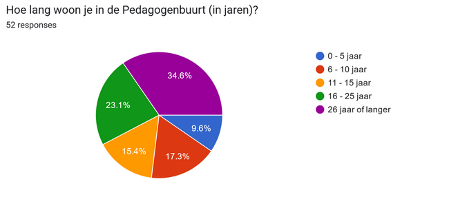 • De meeste wonen langer dan 5 jaar in de buurt. Veel al langer dan 26 jaar.